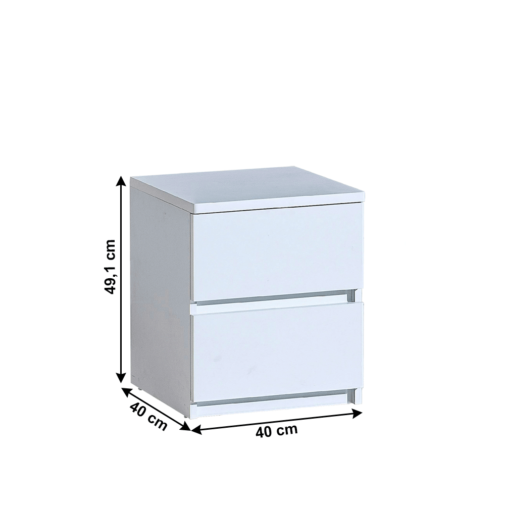 Materiál: laminovaná DTD Barva: bílá arktická Rozměry (ŠxHxV): 40x40x49,1 cm Dva šuplíky Nosnost šuplíků: 3 kg Moderní design Dodávána v demontu
