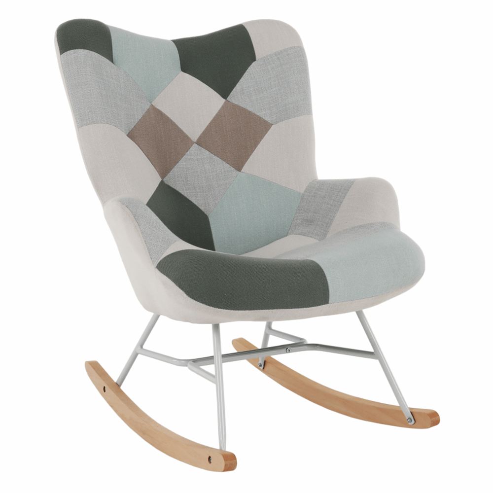 Designové houpací křeslo, patchwork modrá / zelená, KEMARO