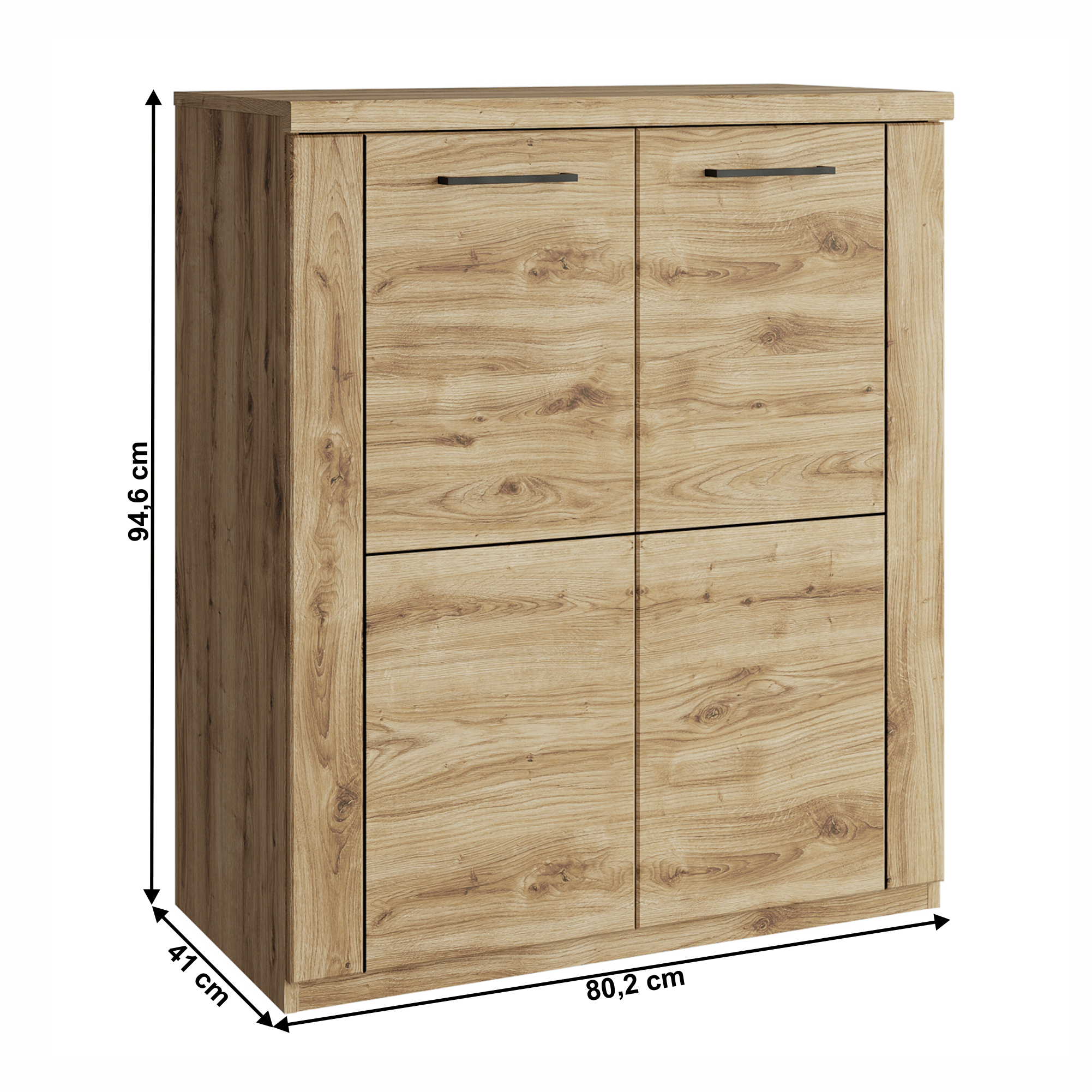2 dveřová komoda se 4 šuplíky, dub sonoma, HANY NEW 010