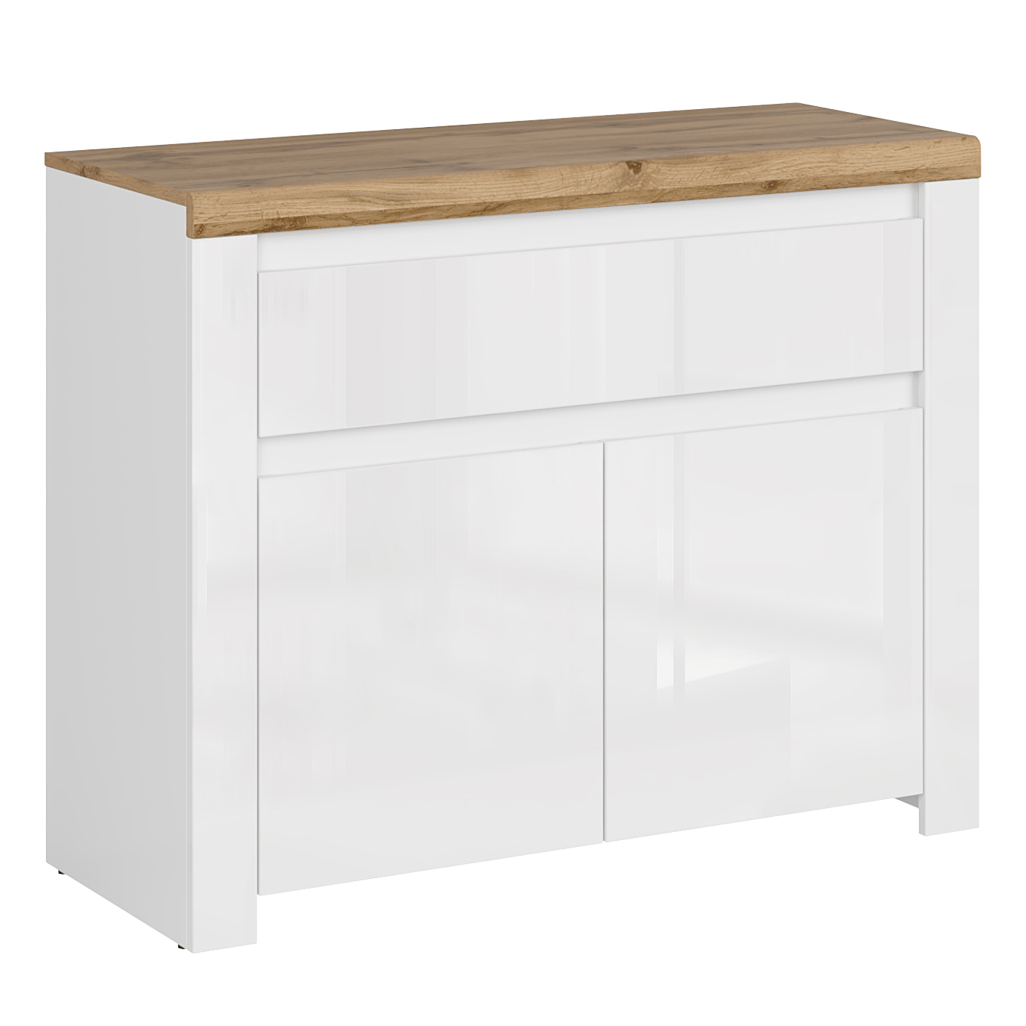 Komoda 2D1S, bílý lesk/dub wotan, VILGO