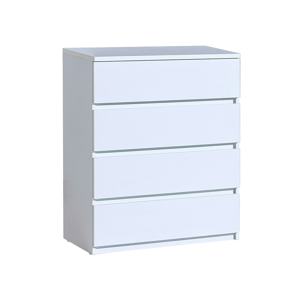 Materiál: laminovaná DTD Barva: bílá arktická Rozměry (ŠxHxV): 80,1x40x94 cm Čtyři šuplíky Bezouchytné Nosnost šuplíku: 3 kg Moderní design Dodáván v demontu
