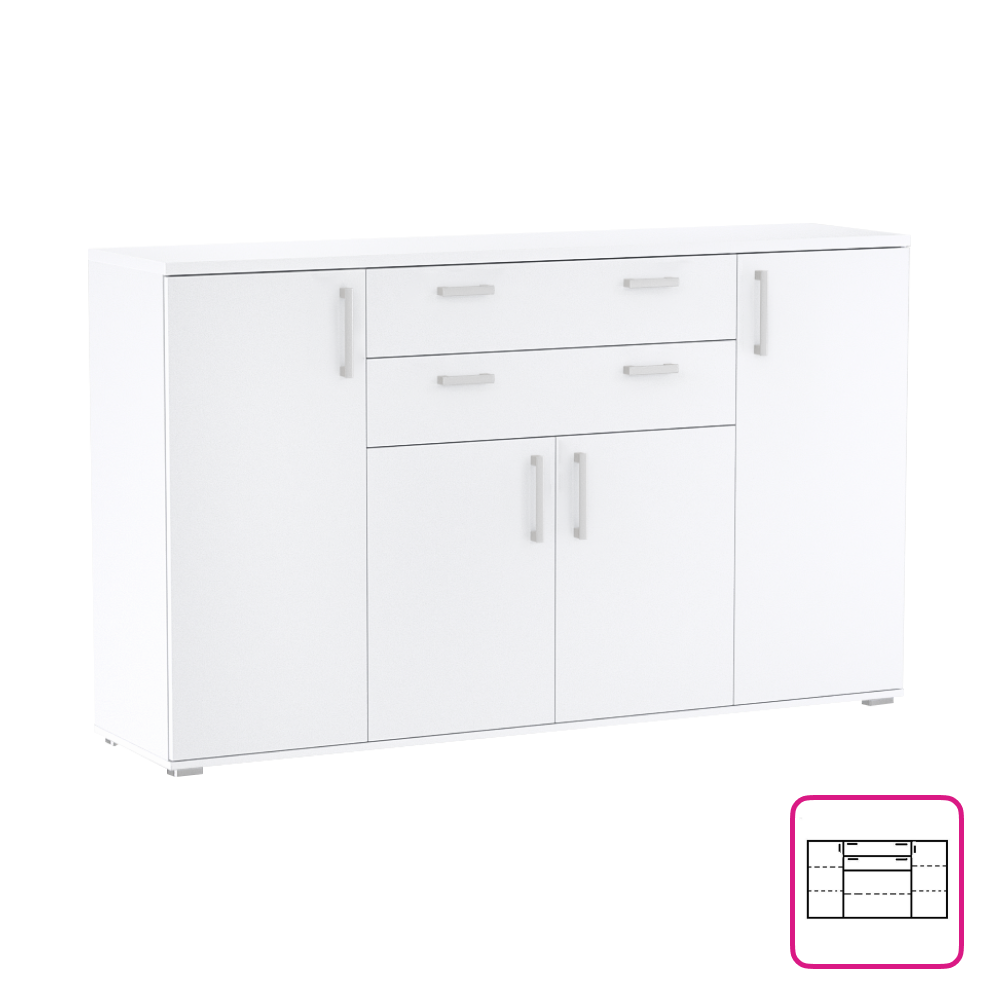 2 dveřová komoda se 4 šuplíky, bílá, HANY NEW 010