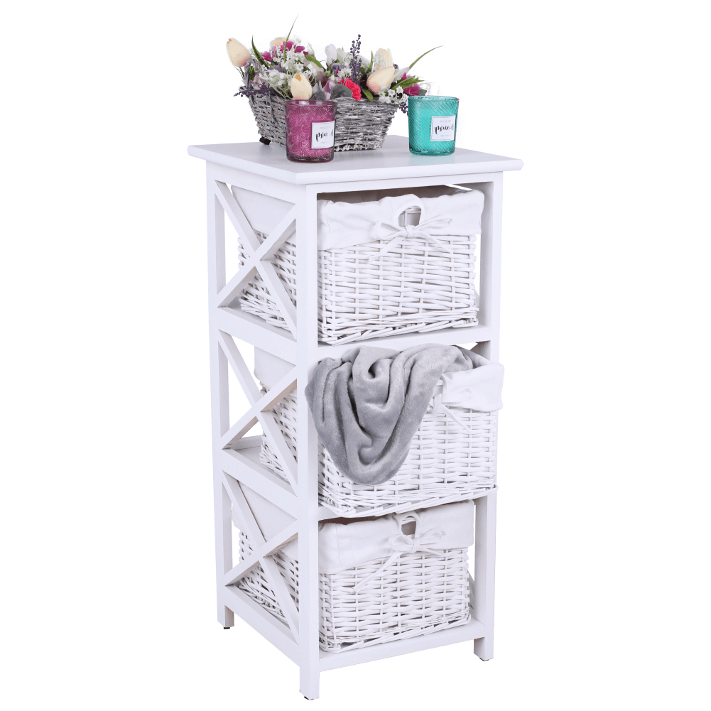 Komoda, dřevo / proutí/ látka, bílá, Rafaello 3