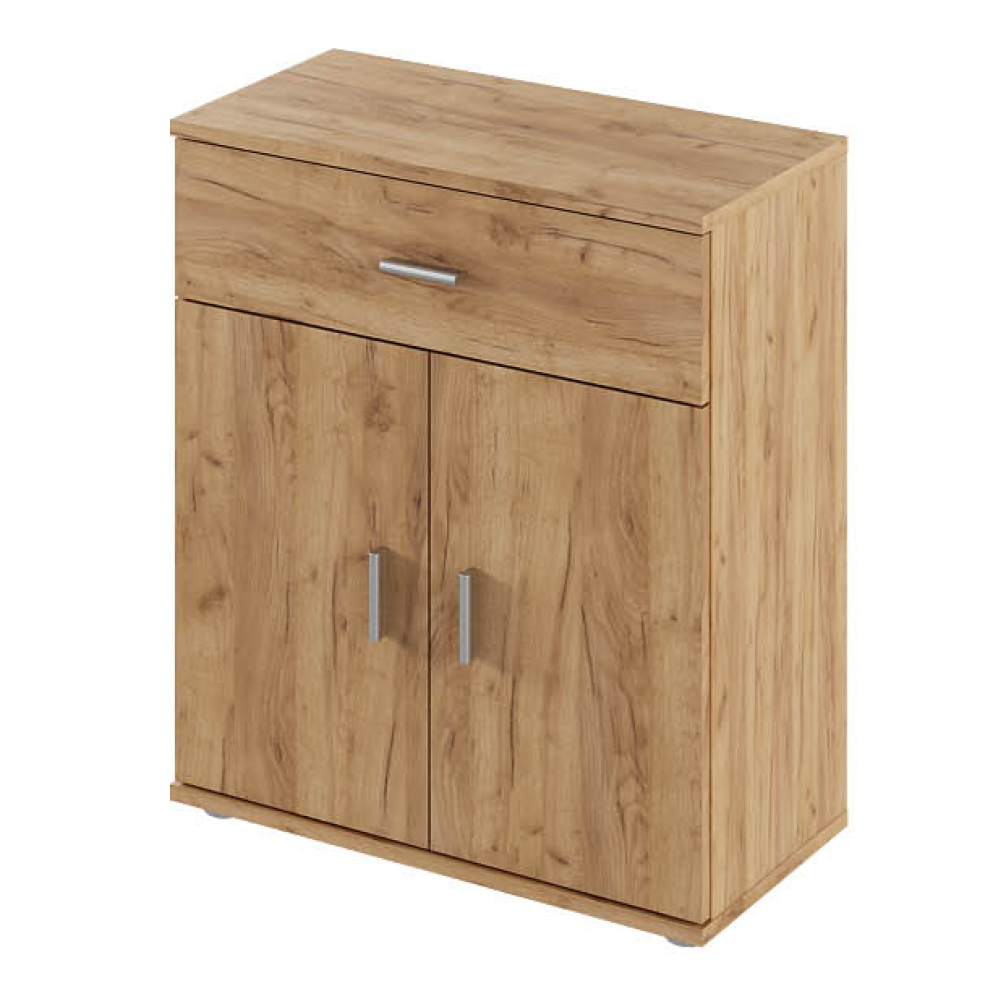 Materiál: DTD laminovaná Barva: dub craft zlatý Rozměry (ŠxHxV): 60x30x69,2 cm Rozměry dvířek (ŠxV): 29,6×47,8 cm Vnější rozměry šuplíku (ŠxHxV): 59,4x25x15,7 cm Vnitřní rozměry zásuvky (ŠxHxV): 51x 23,3×10 cm Tloušťka materiálu: 1,6 cm Tloušťka materiálu poličky: 1,6 cm Šířka police: 56,6 cm Nosnost police: 5 kg Výška nožiček: 1,6 cm Jedna police Dvoudveřová S úchyty S jedním šuplíkem Kvalitní slovenský výrobek Dodávána v demontu