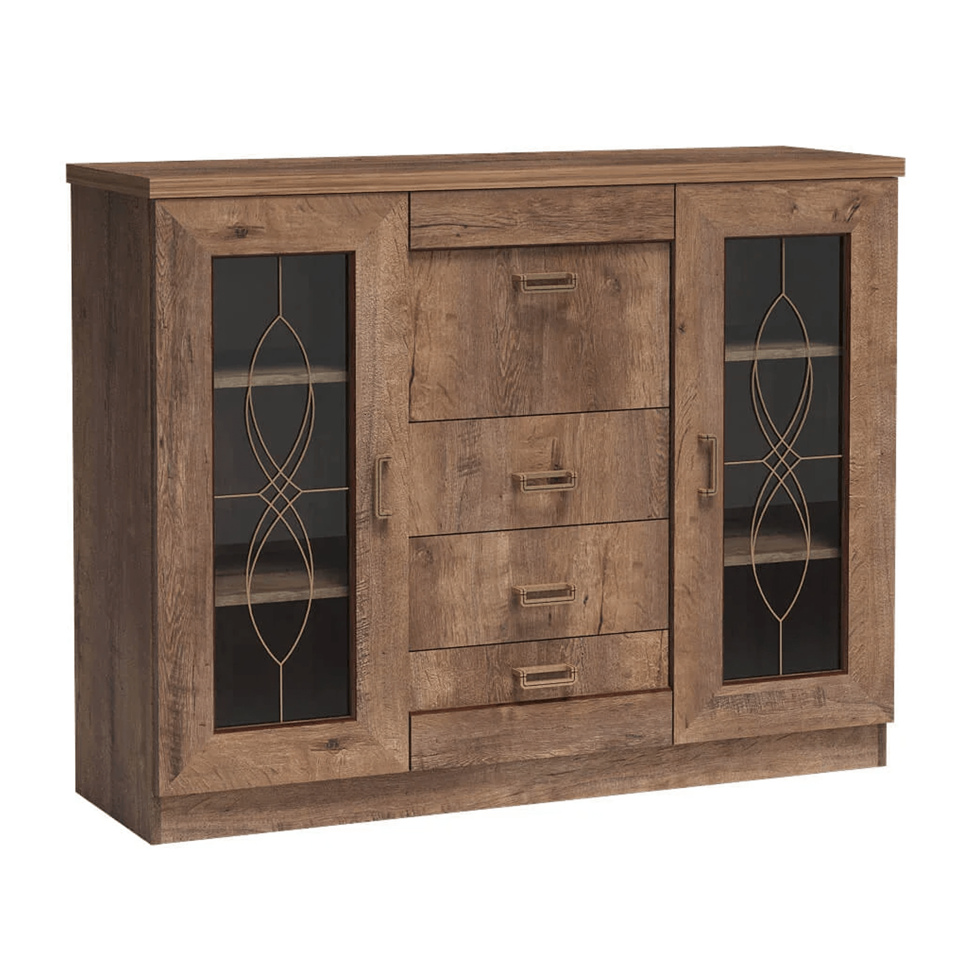 2 dveřová komoda se 4 šuplíky, dub sonoma, HANY NEW 010