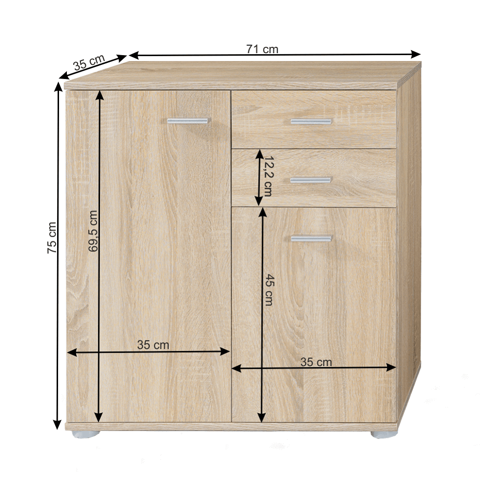2 dveřová komoda, dub sonoma, HANY NEW 008