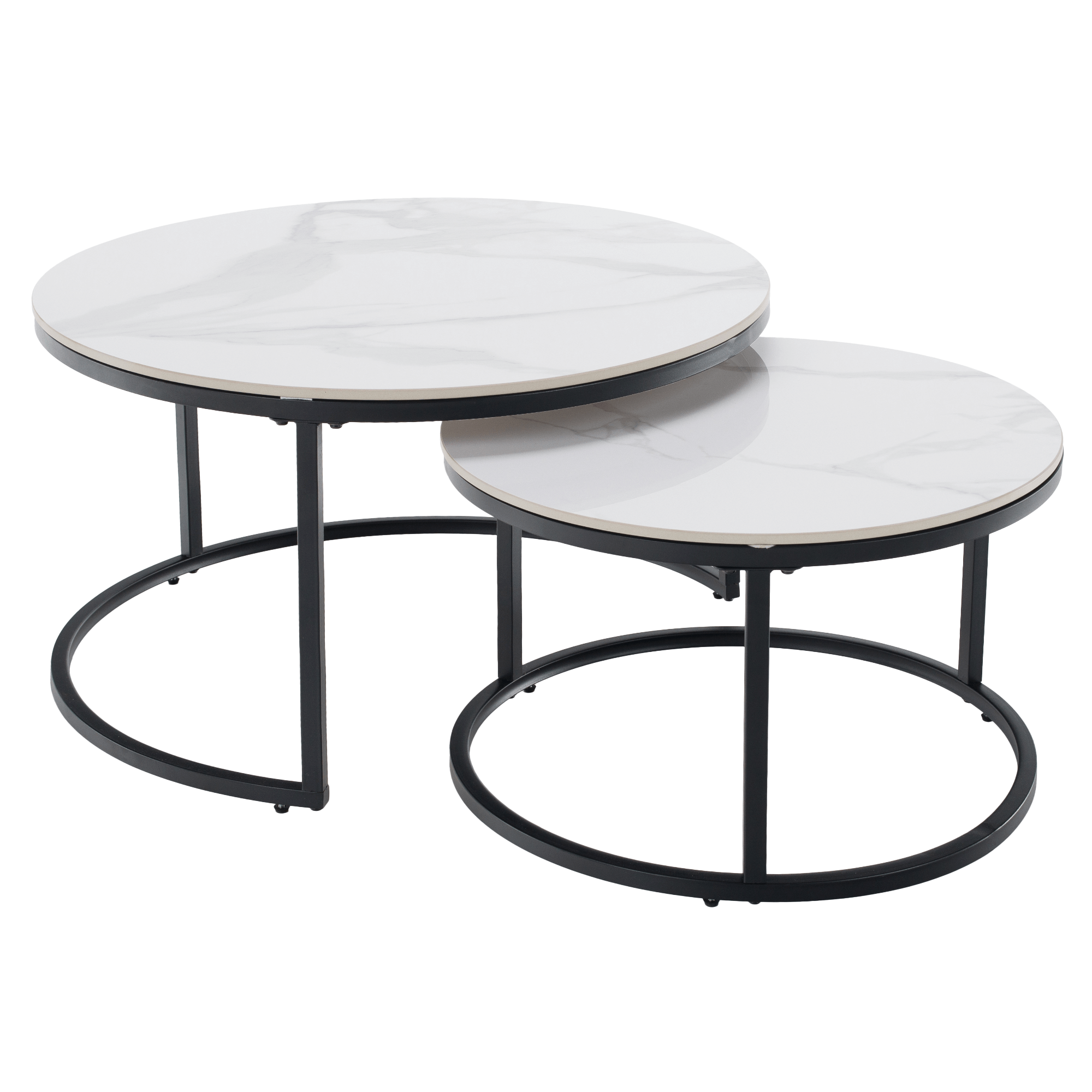 Konferenční stolky, sada 2 ks, bílý mramor/černá ocel, LASTRO