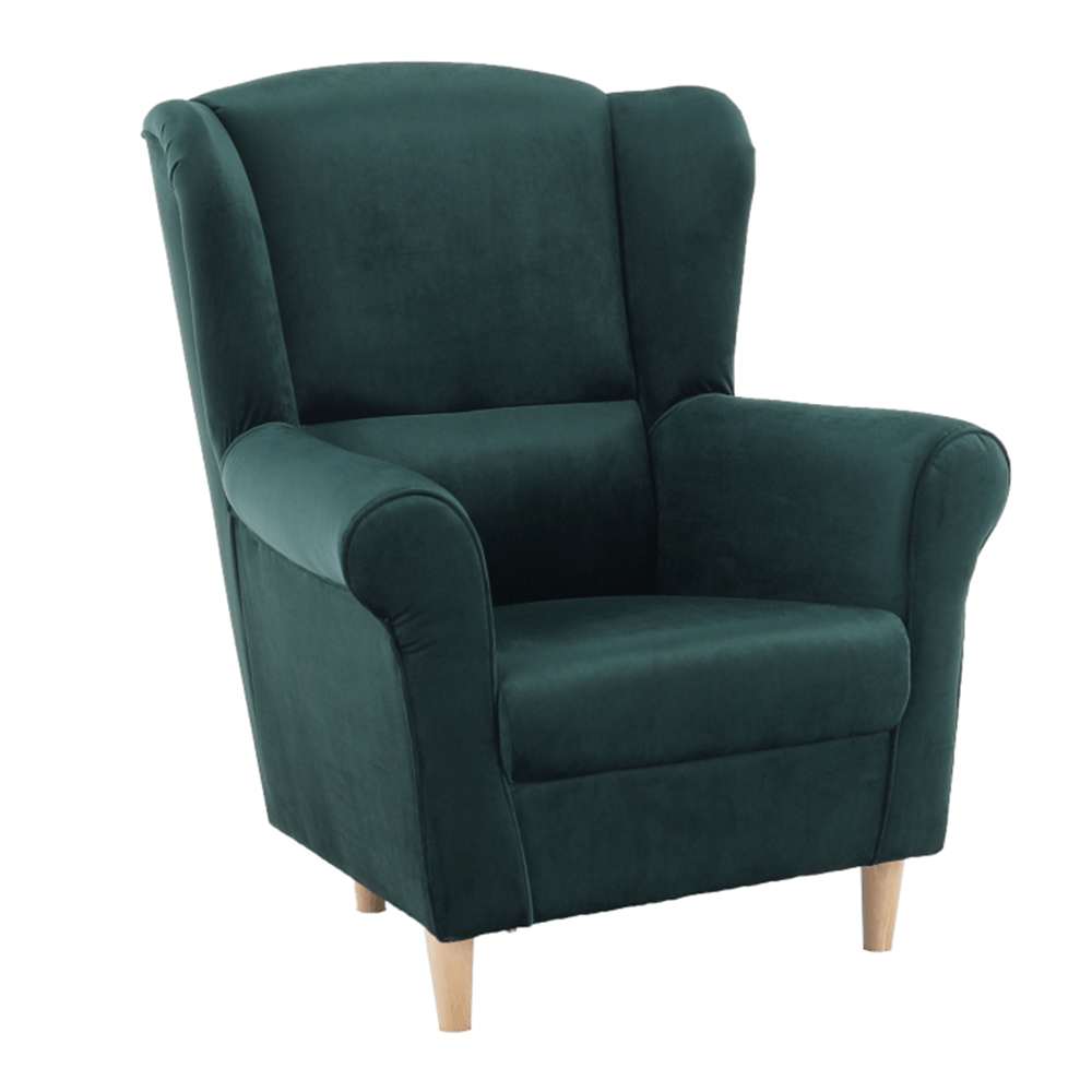 Křeslo-ušák CHARLOTv barevném provedení látky riviera smaragdová 38.
