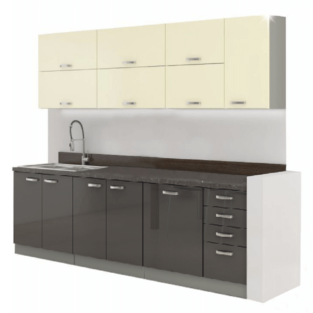 Kuchyňská linka, šedá / krémová, extra vysoký lesk, PRADO