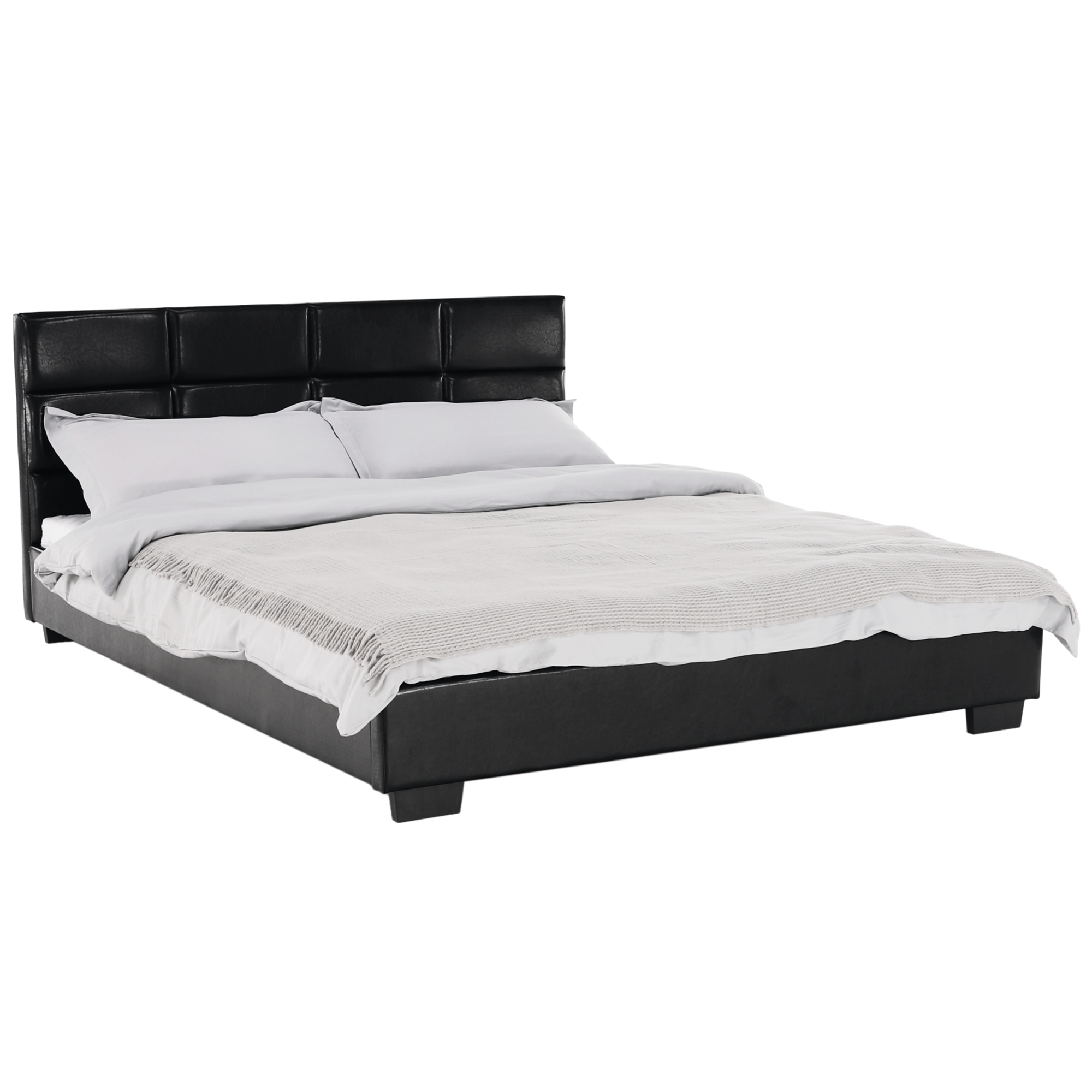 Postel MIKEL s prošívaným čelem, s lamelovým roštem. Barevné provedení černá koženka.