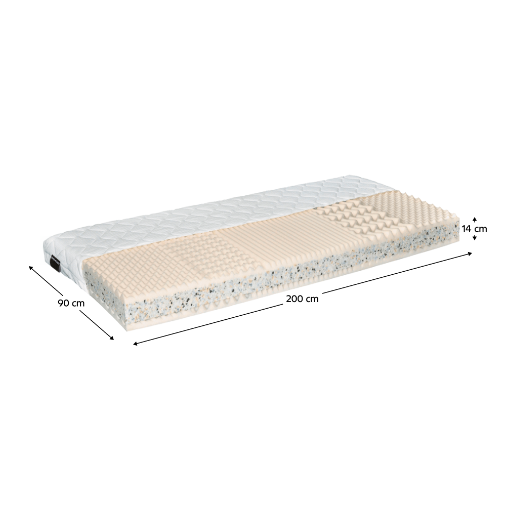 Matrac MONIKA 90×200 cm je tvorený kombináciou dvoch PUR pien a RE peny,