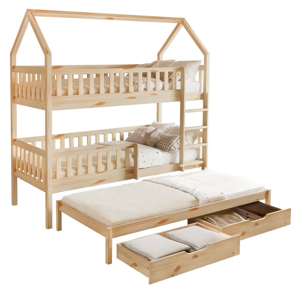 Montessori patrová postel s přistýlkou, přírodní, VENITA TYP 1