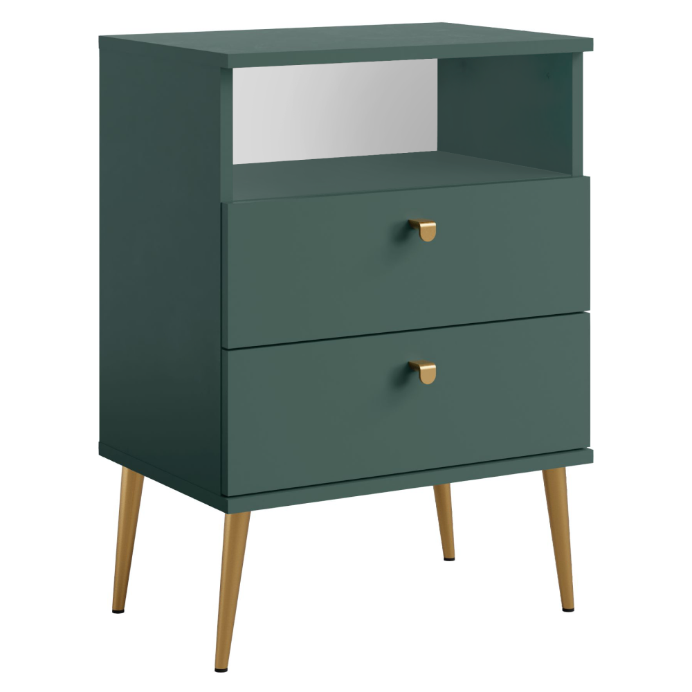 Noční stolek s 2 šuplíky, zelená/zlatá, IGNE TYP 2