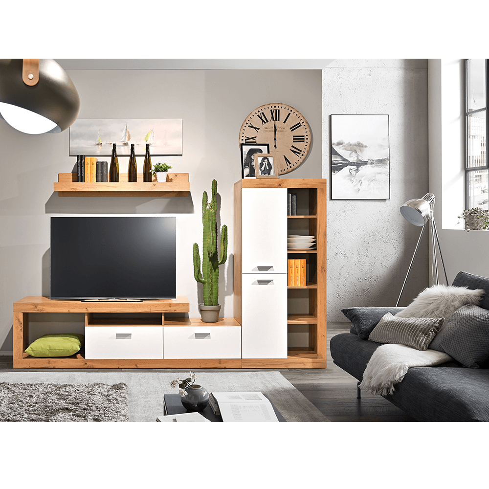 Obývací stěna, bílá/dub wotan, FIJI NEW