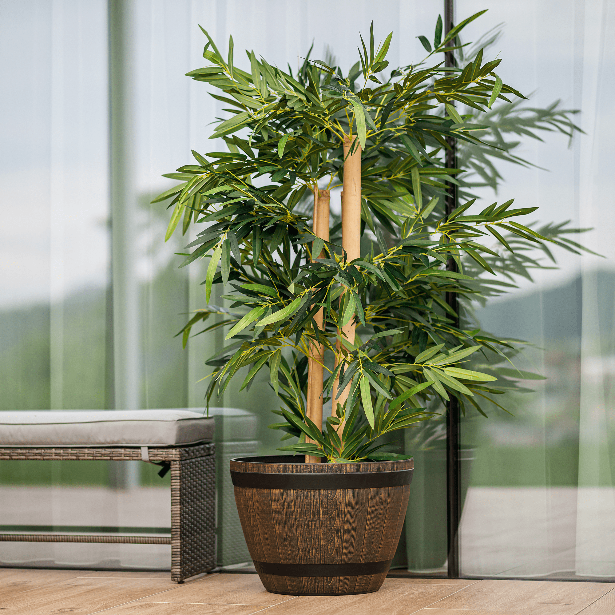 Plastový květináč, hnědá barva, vzor dřevo, MODAN TYP 2