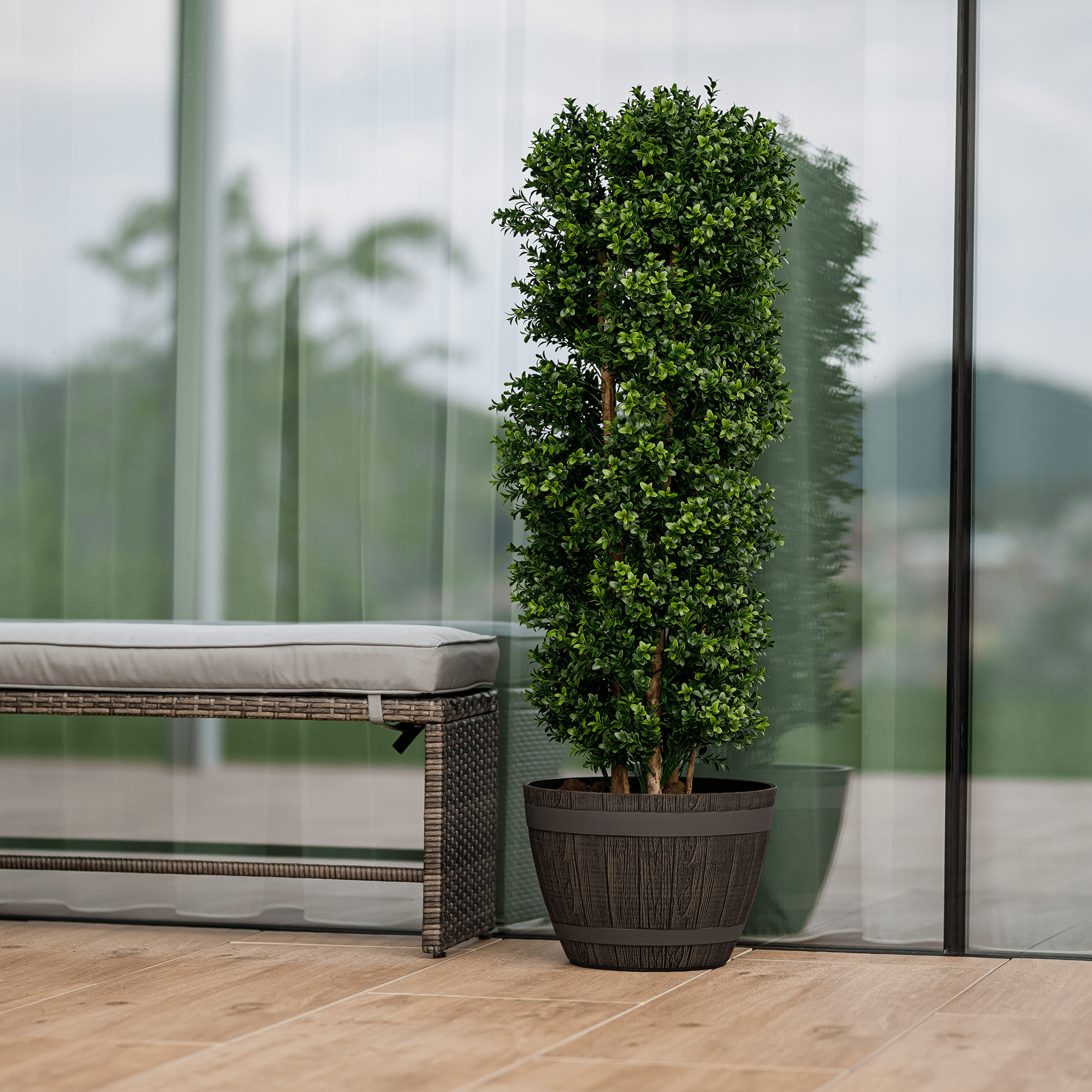 Plastový květináč, šedohnědý, vzor dřevo, MODAN TYP 1