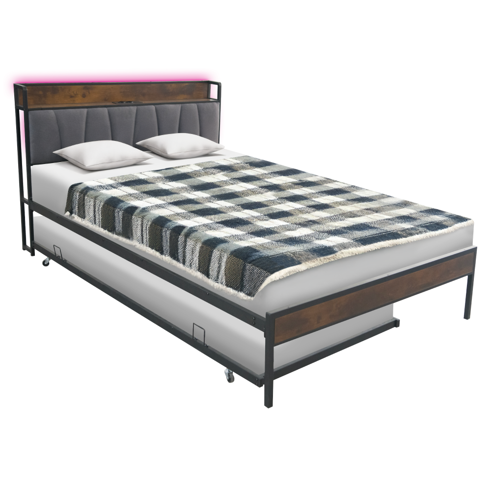 Postel s roštem a výsuvnou přistýlkou, 160×200, černá/šedá, NORDO