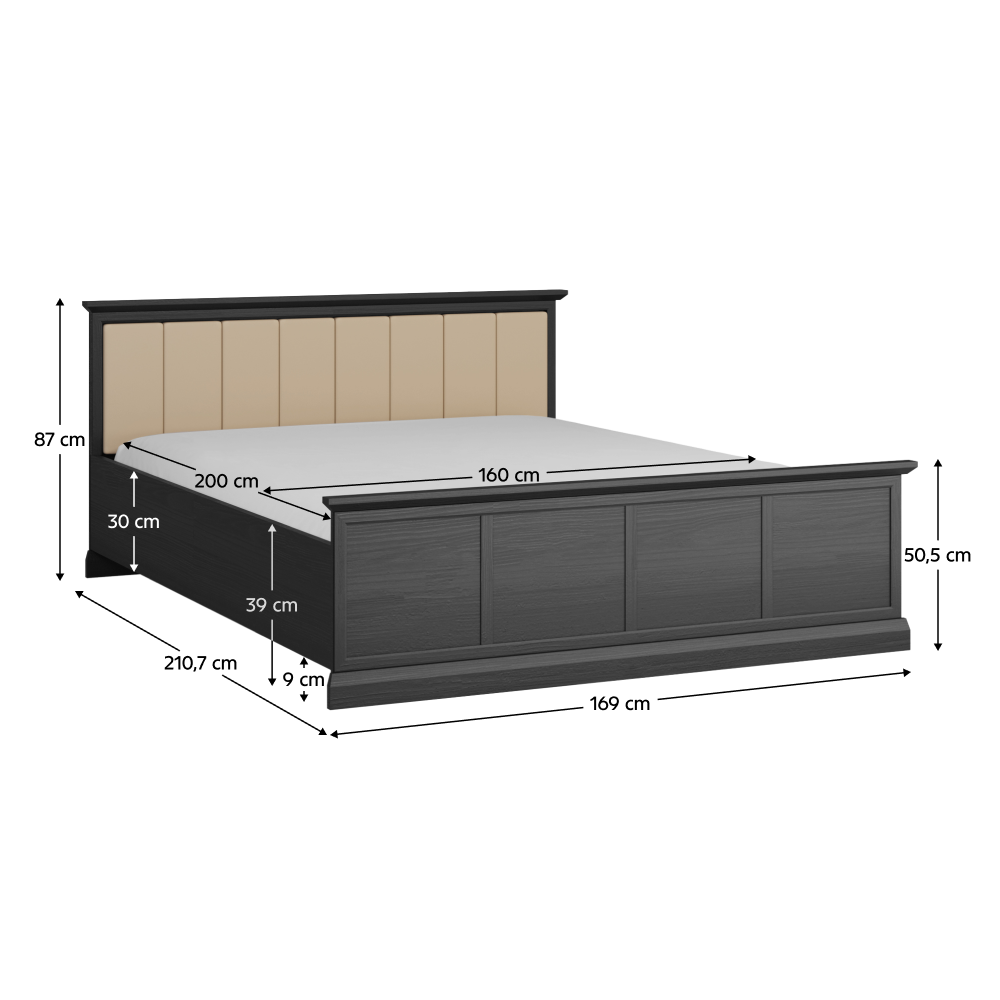 Postel s roštem, černý grafit, 160×200, LOCCA L160