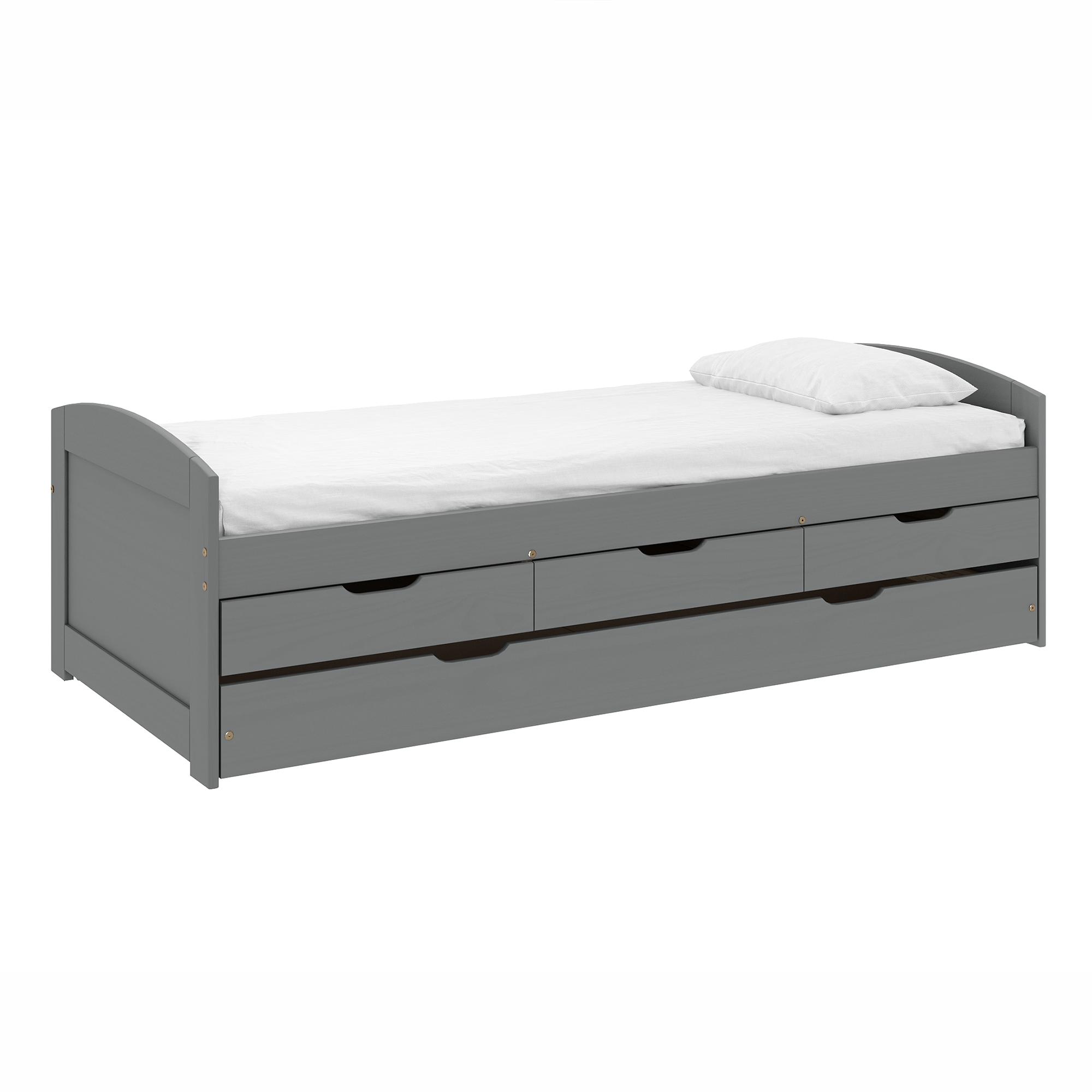 Postel s výsuvnou přistýlkou, šedá, masiv, 90×200, MARINELLA NEW