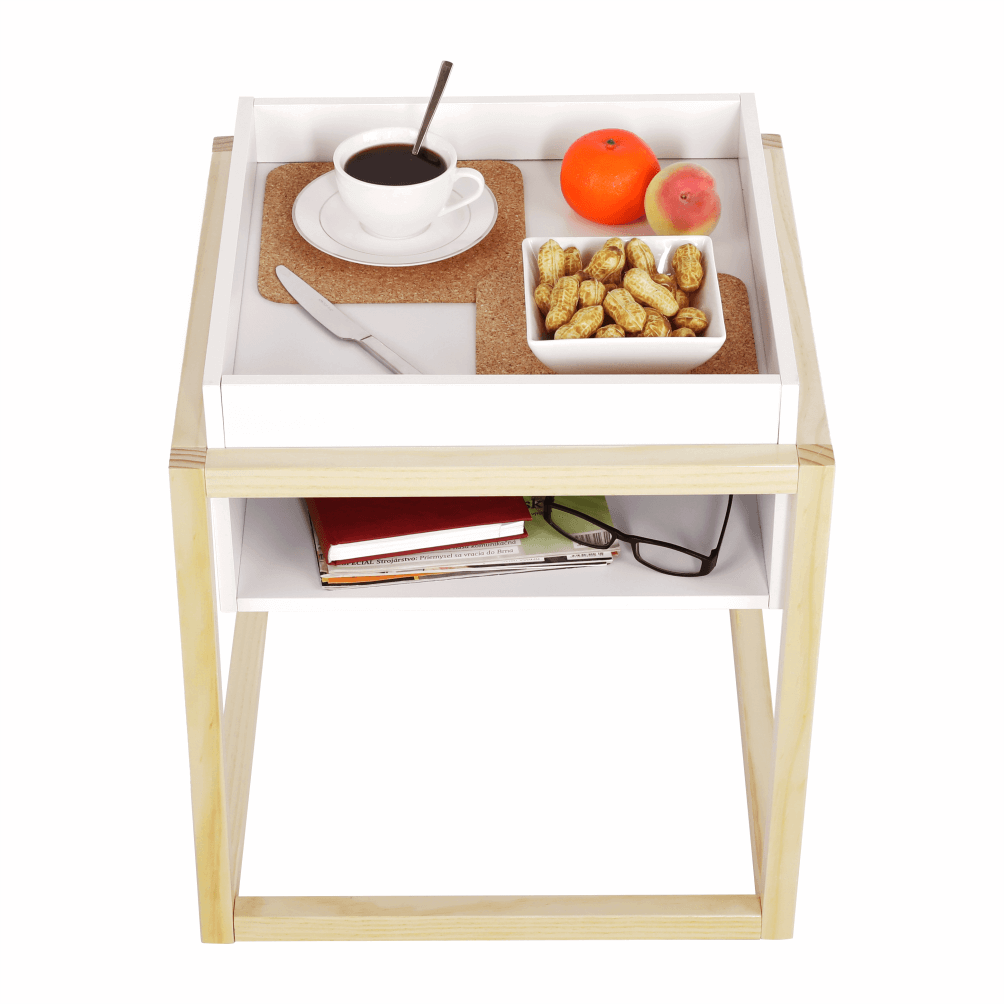 Příruční stolek, bílá/přírodní, HAGAN