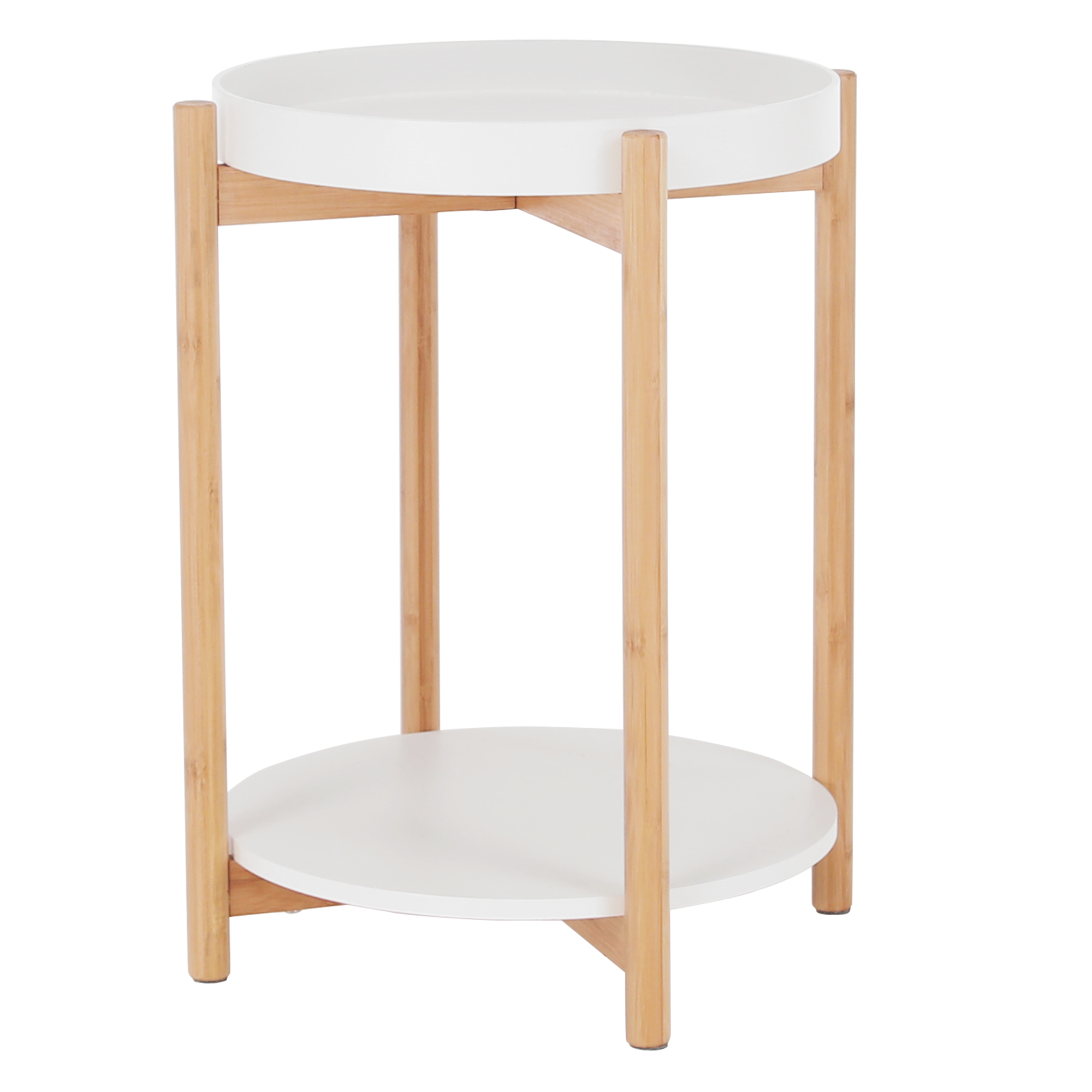 Příruční stolek s odnímatelnou tácem, bílá / přírodní, KABRA