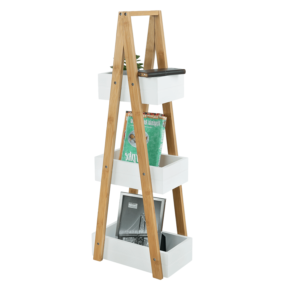 3-poličkový regál, přírodní bambus/bílá, PEORIA TYP 2