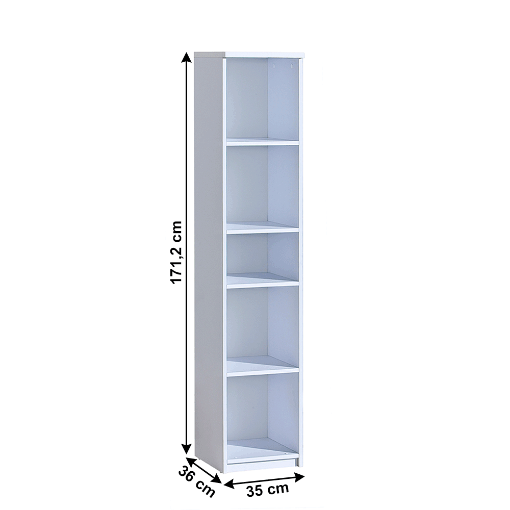 Materiál: laminovaná DTD Barva: bílá arktická Rozměry (ŠxHxV): 35x36x171,2 cm Čtyři police Nosnost polic: 7 kg Moderní design Dodáván v demontu