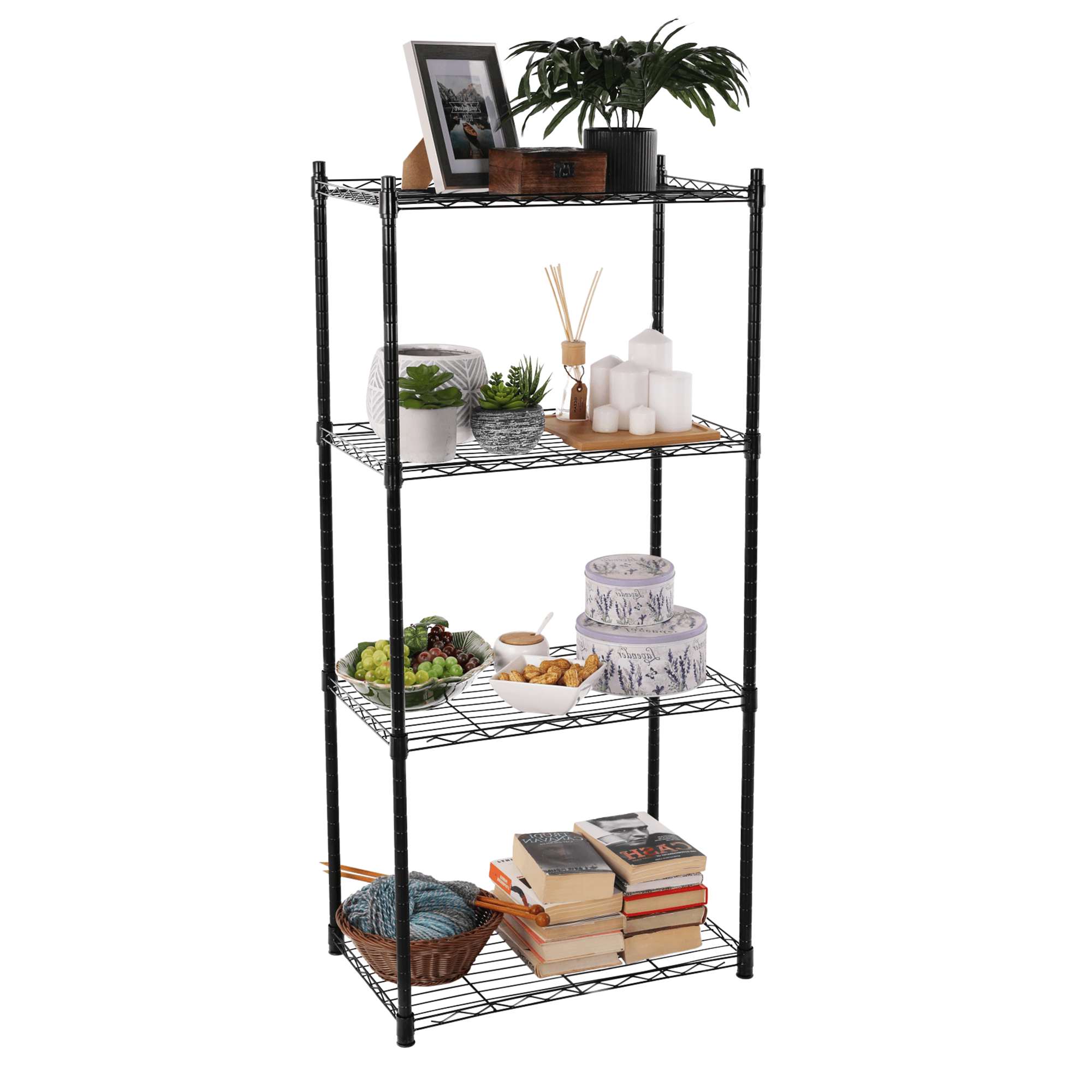 Regál s nastavitelnou výškou polic, 4-policový, černá, NOVEL