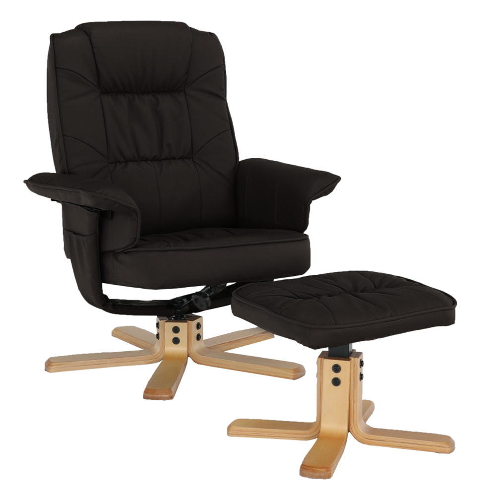 Polohovací, otáčivé relaxační křeslo s podnožkou LERATO v cappucino barvě s natural dřevěnou podnožkou
