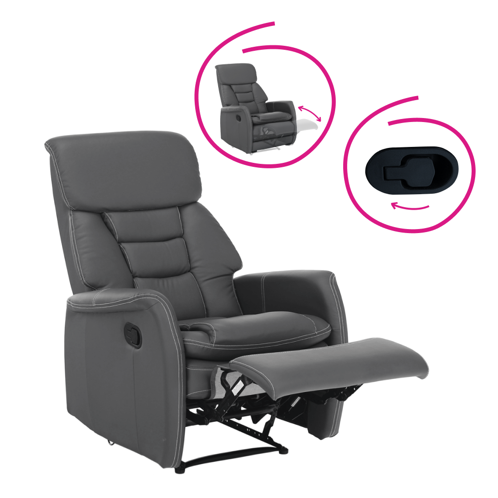 Relaxační křeslo, šedá ekokůže, KOMFY