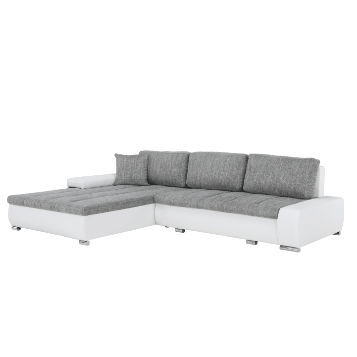 Sedací souprava s úložným prostorem, univerzální, ekokůže bílá / látka Berlin 01 šedý melír, TONIKS