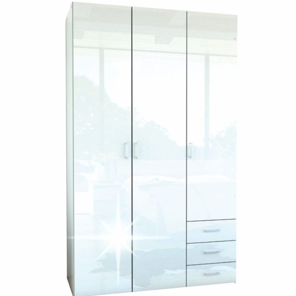 Skříň, 3 – dveřová, bílá extra vysoký lesk HG, GWEN 70427
