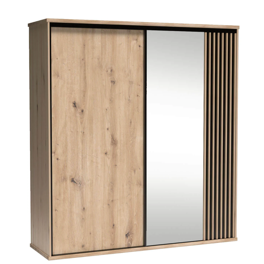Skříň s posuvnými dveřmi, dub artisan/černá, 199×216, KOLI C15