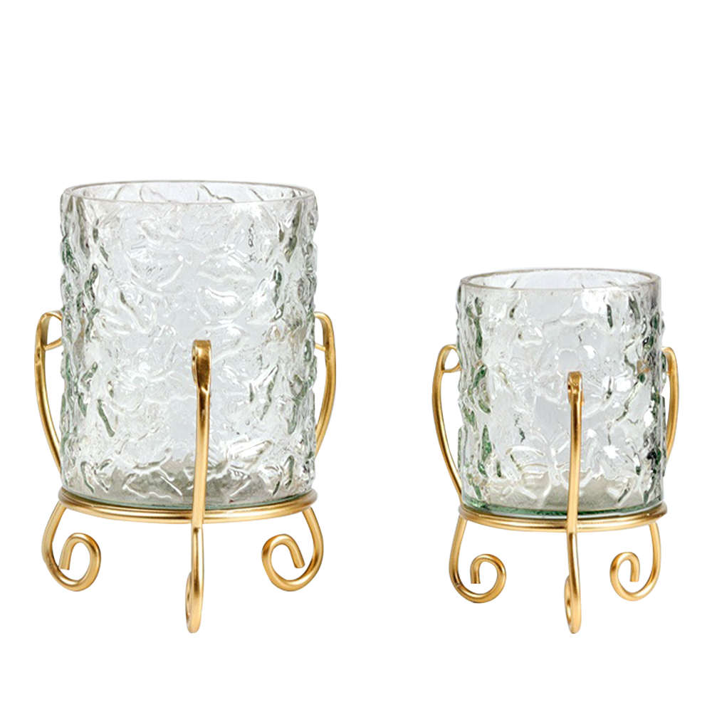 Svícny, set 2 ks, zlatá, sklo/kov, DINEM