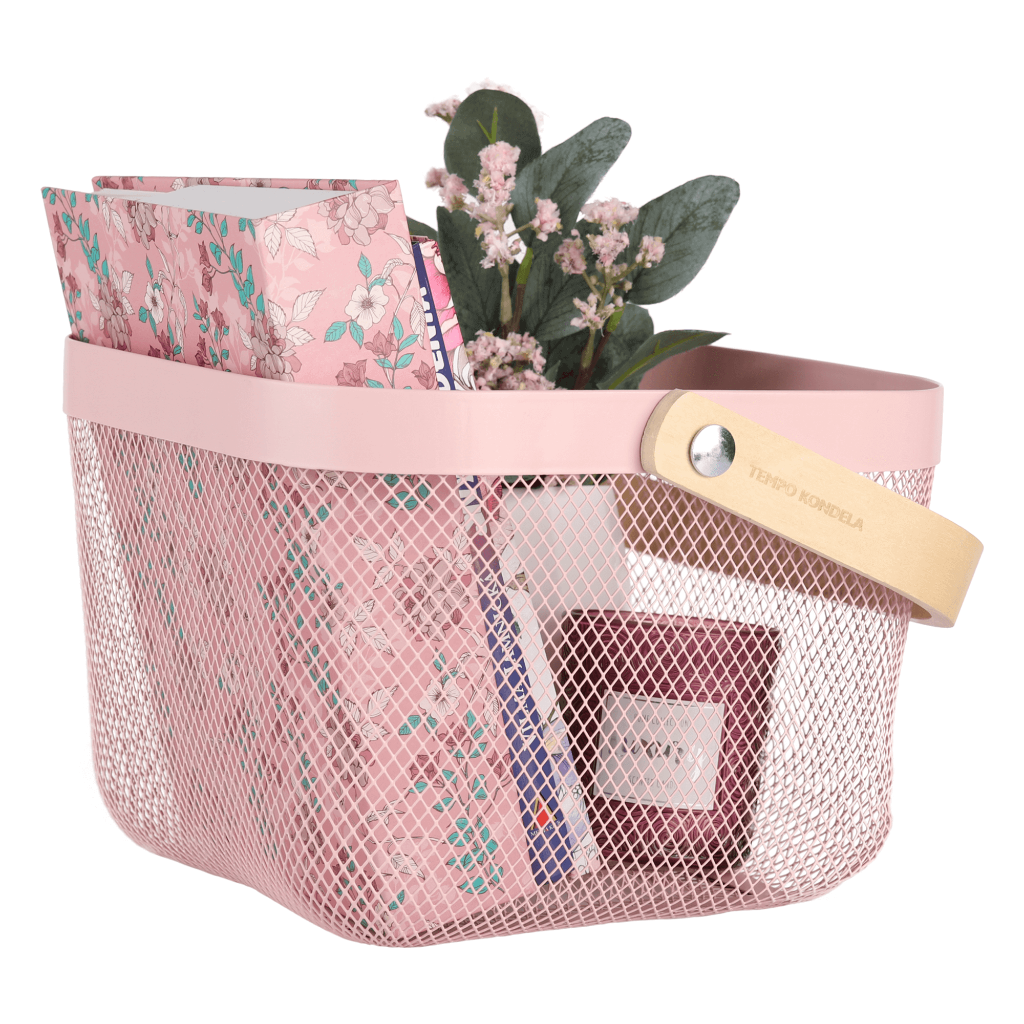 TEMPO-KONDELA KITEN TYP 4, kovový košík s rukojetí, růžová