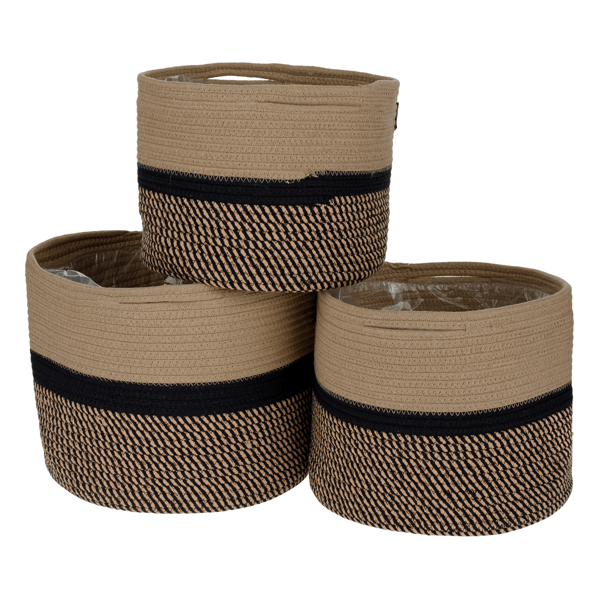 TEMPO-KONDELA KORLIS, obaly na květináče, set 3 ks, přírodní/černá