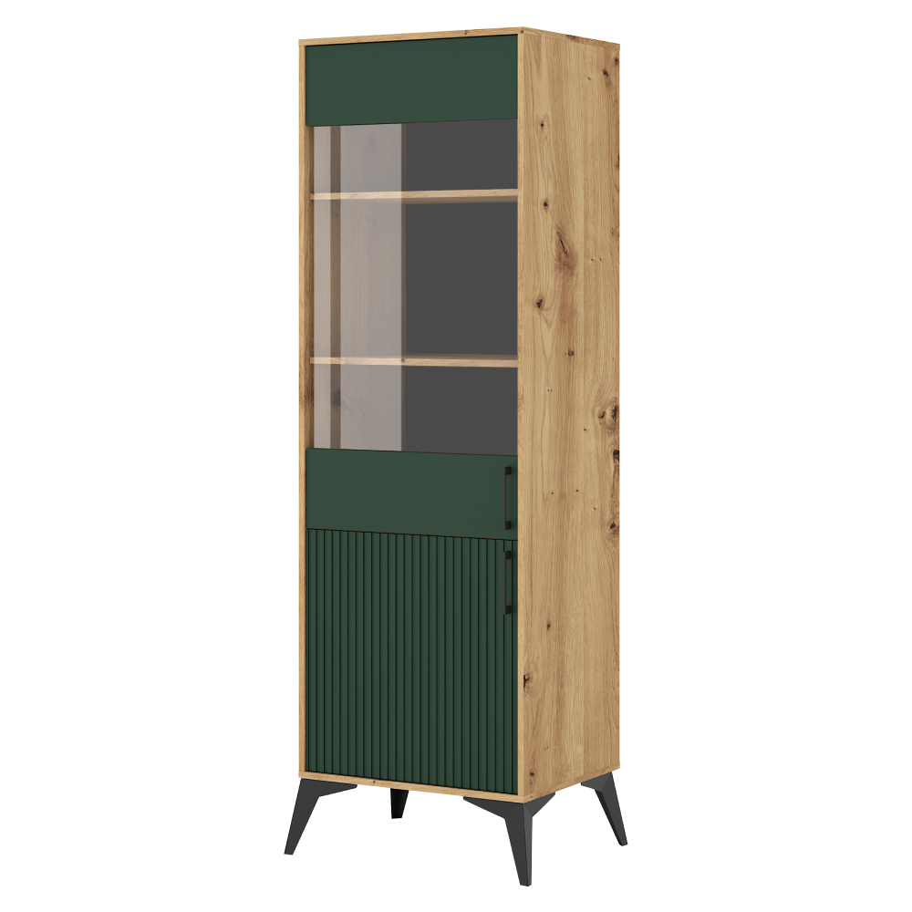 Vitrína, dub artisan/tmavě zelená, LUGON 2D LU9