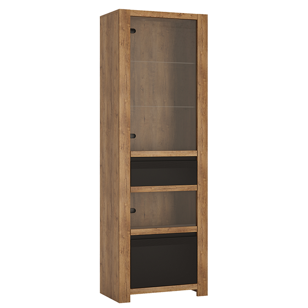 Vitrína 1W1S, dub wotan/černá, LOFTA