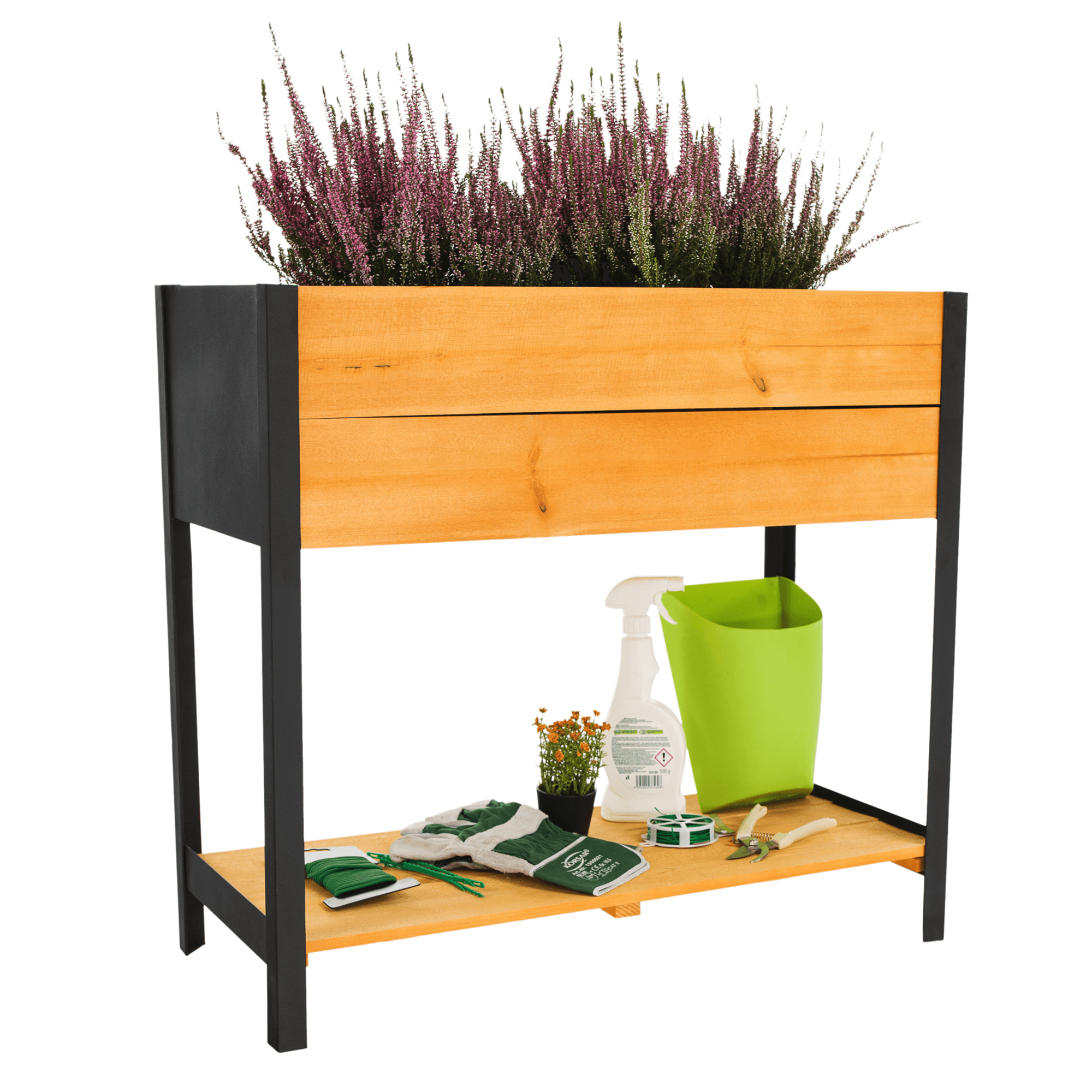 Vyvýšený záhon s odkládací policí, dřevo / přírodní, MONTO TYP 1