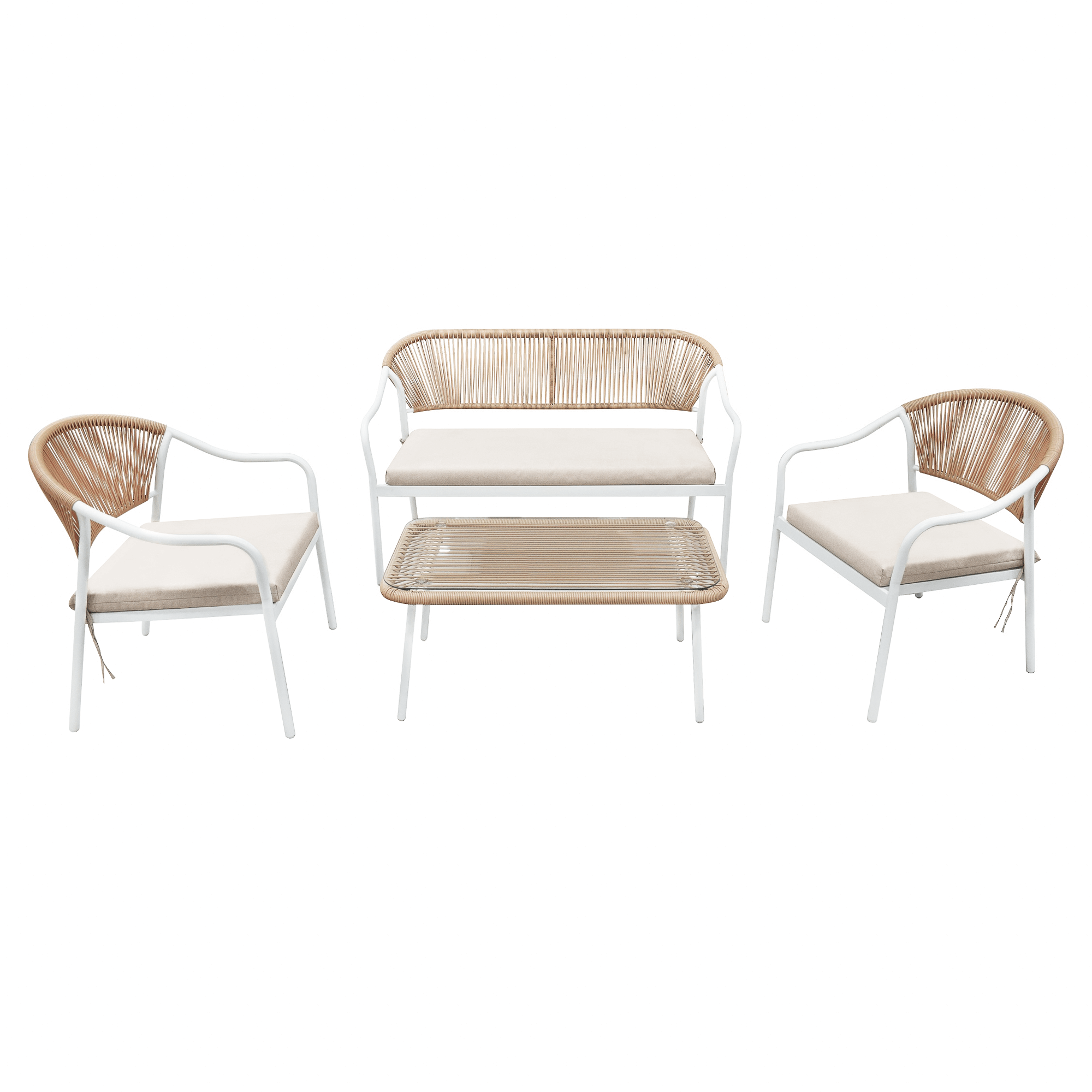 Zahradní 4-dílný ratanový set, bílá/béžová, PALNY