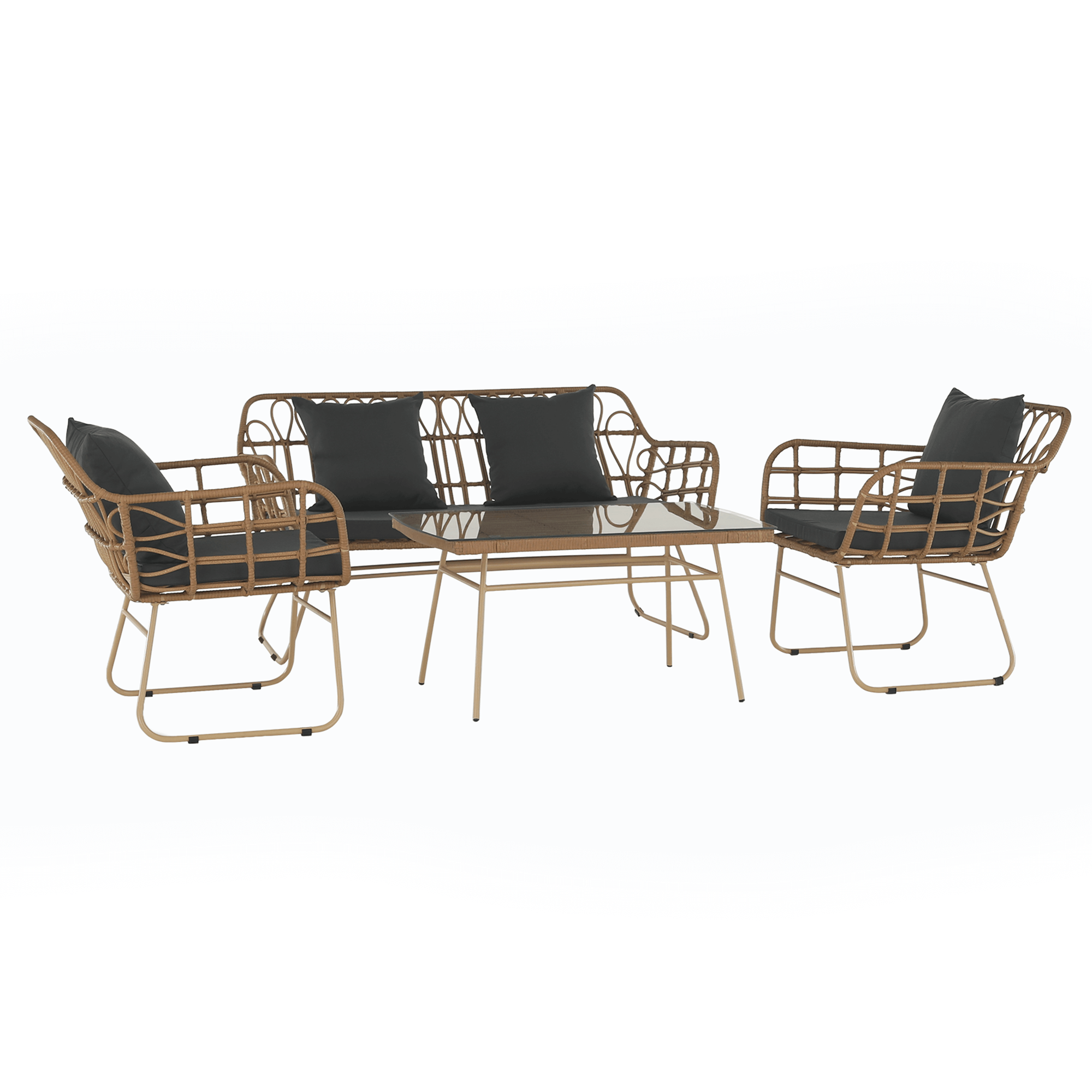 Zahradní 4 dílný ratanový set, přírodní/šedá, TAJRO