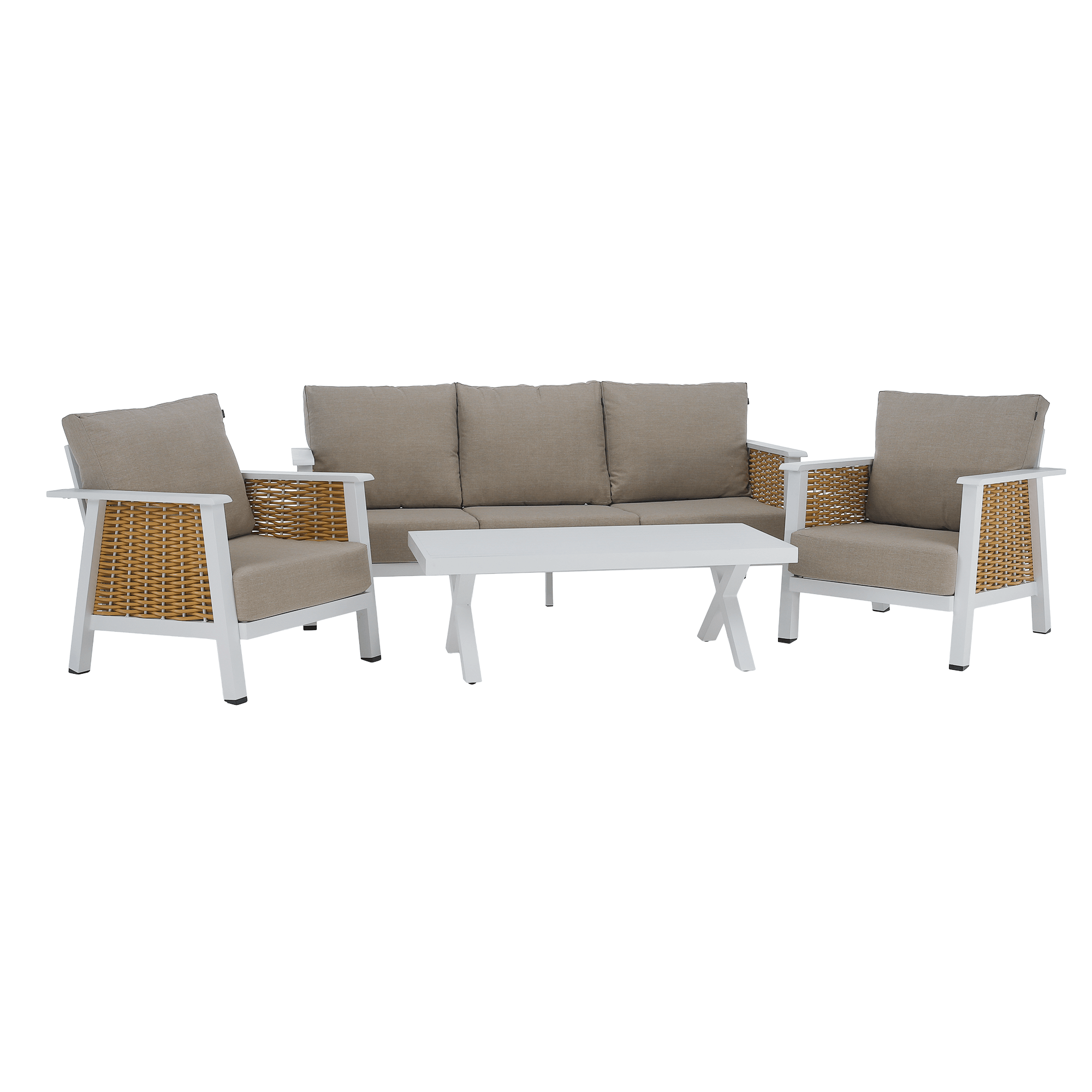 Zahradní 4-dílný set, světle hnědá/bílá/hnědá, hliník, BABAK