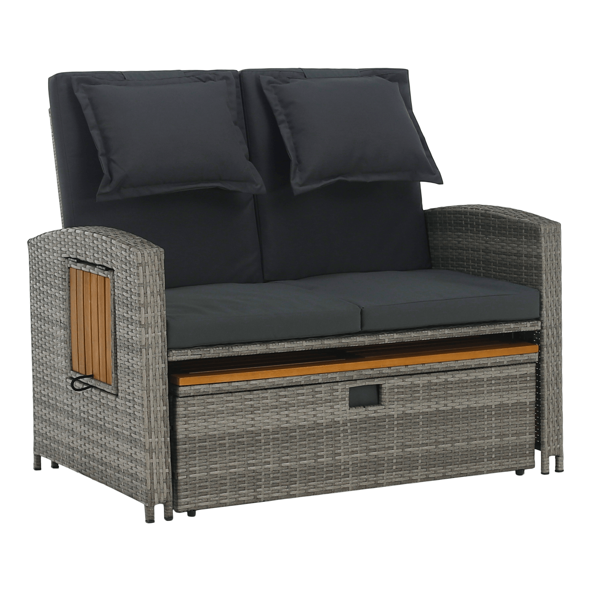 Zahradní ratanová pohovka, šedá/přírodní, MALORY