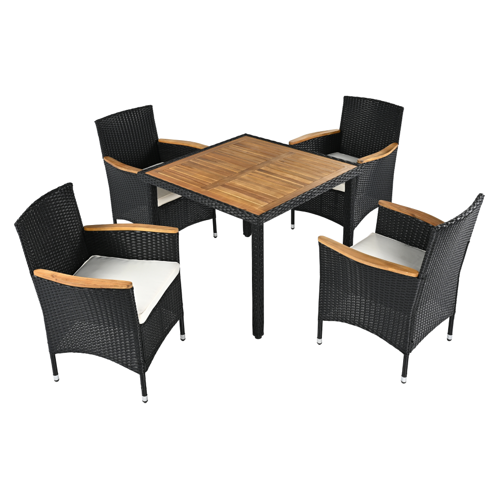 Zahradní ratanový set, akáciové dřevo, černá/krémová/přírodní, BOGART RP1, rozbalené zboží