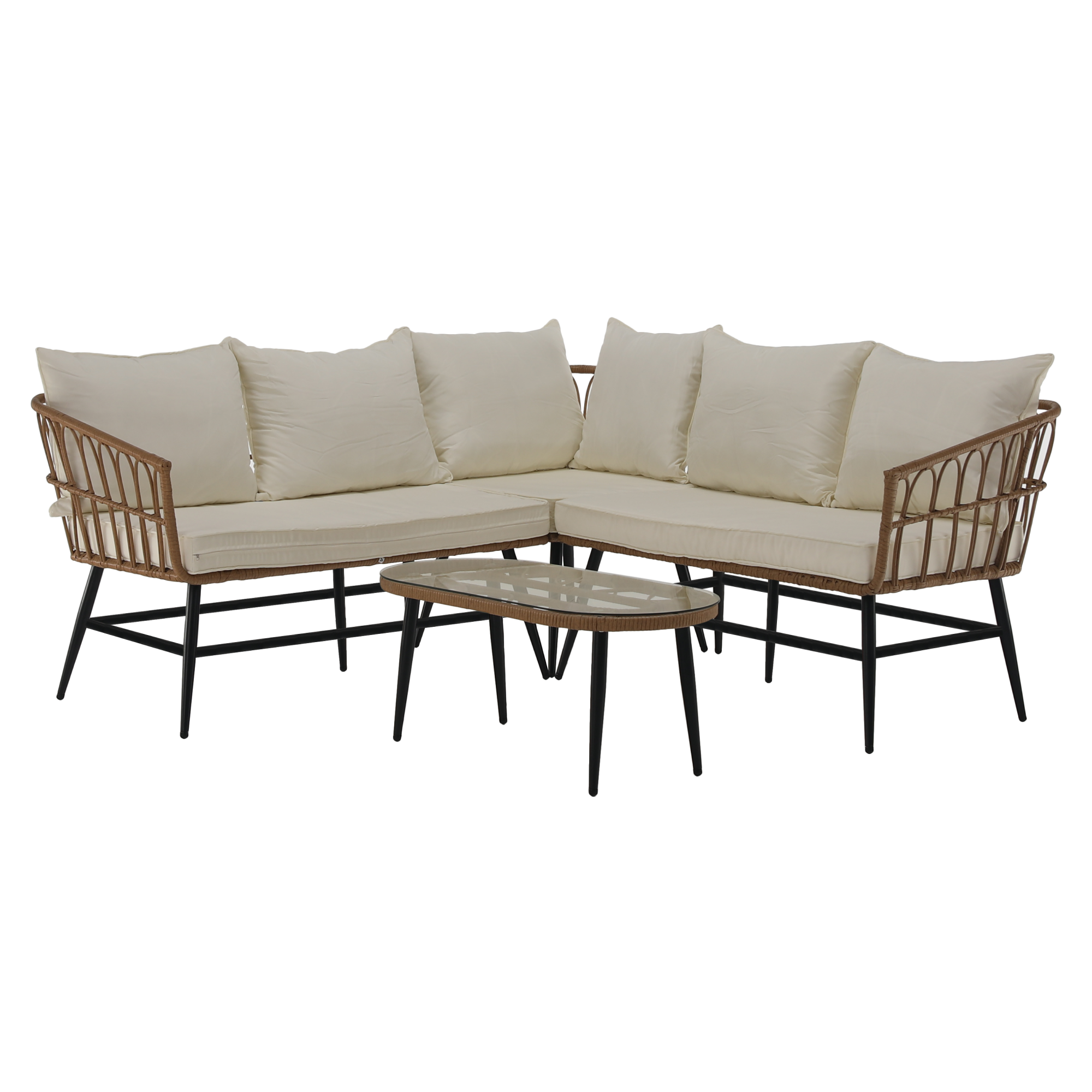 Zahradní ratanový set, přírodní/béžová/černá, ARALY