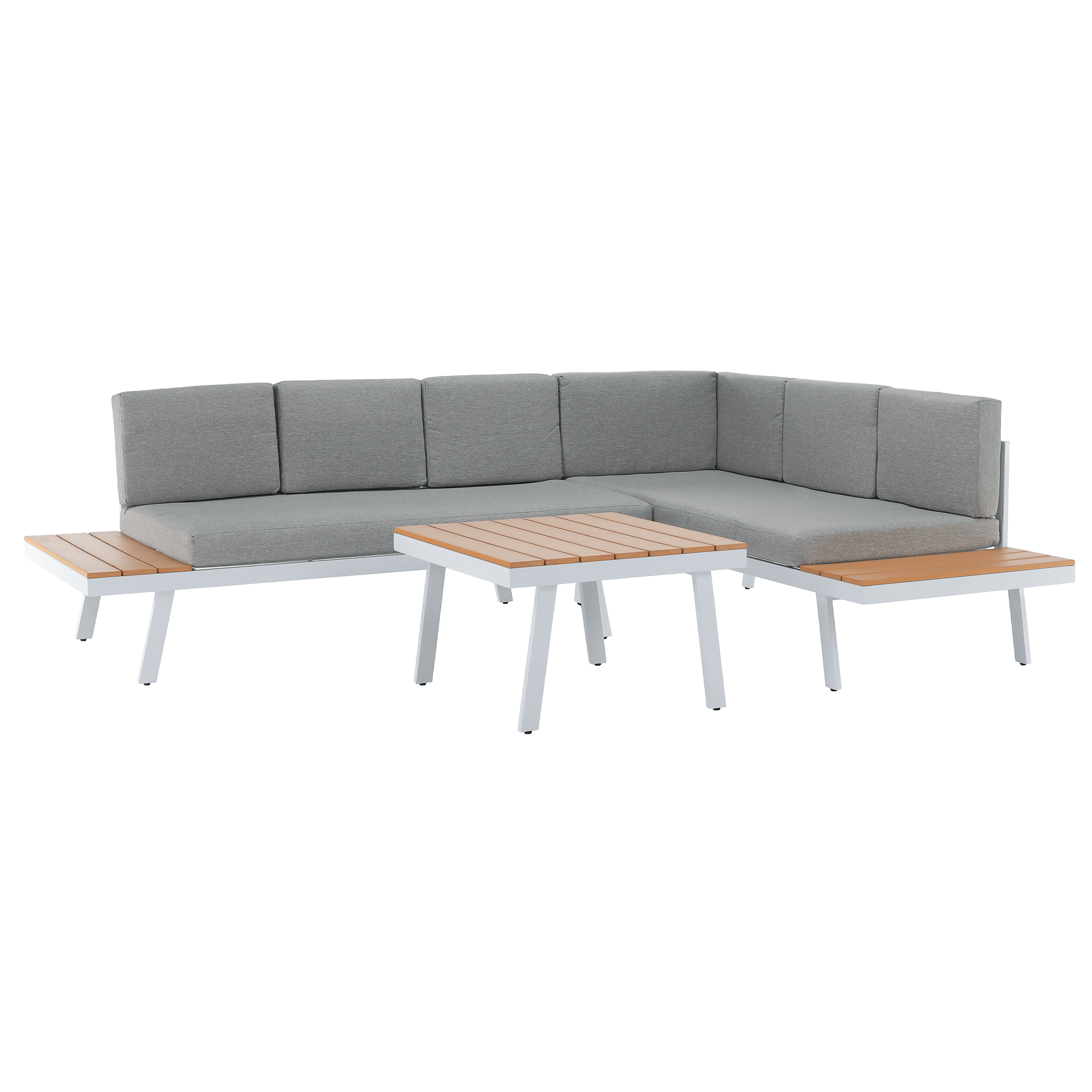 Zahradní set, bílá ocel/dub/světle šedá, PELOR