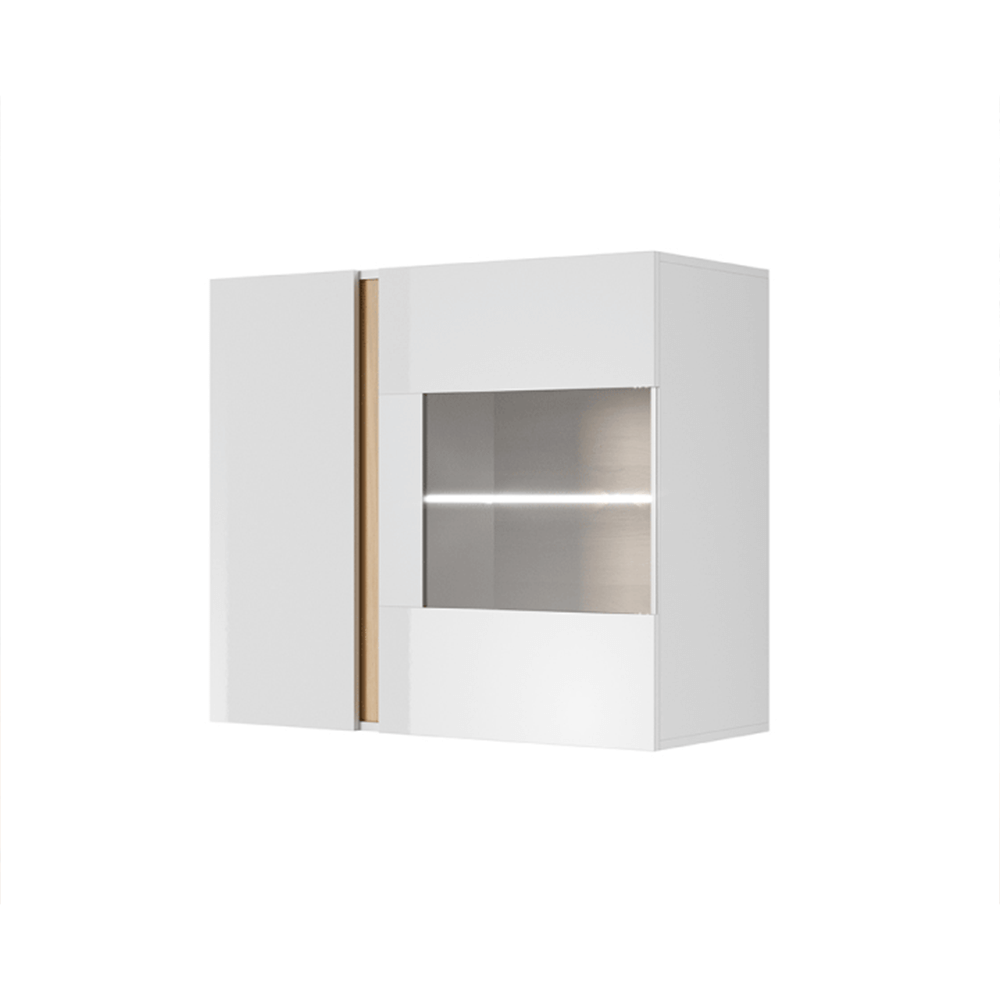 Závěsná vitrína 96, bílá / dub grandson / bílý lesk, CITY