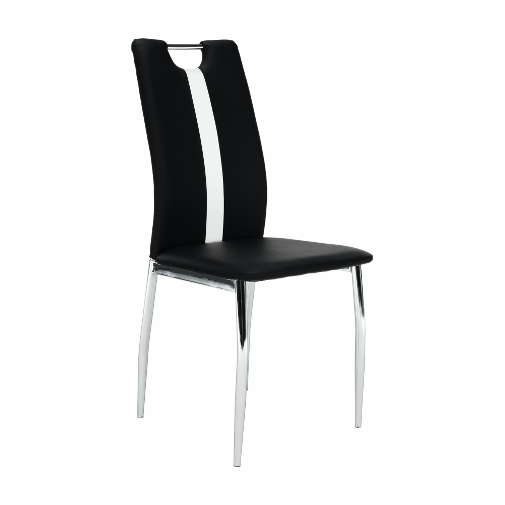 Jídelní židle s prošitím, materiál: ekokůže + chrom, barevné provedení: černá + bílá ekokůže, rozměry: ŠxHxV: 41x44x97 cm. Výška sezení je 46 cm. Nosnost: 110 kg Dodávané v demontu.