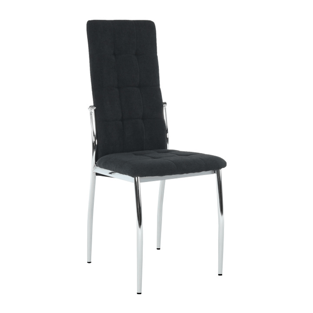 Židle ADORA v provedení černé látky s chromovými nožičkami.